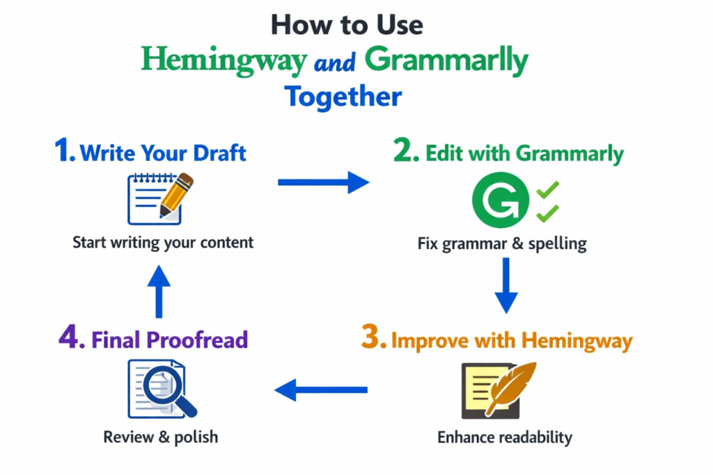This workflow has saved me from so many embarrassing mistakes. Grammarly catches the errors. Hemingway catches the complexity. Together, they produce cleaner, more readable, and more SEO-friendly content.