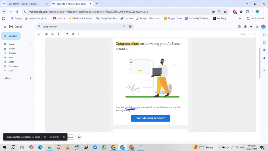 Quick Tip: Don’t Apply for AdSense with just three or four articles. Build a strong base of 20 to 25 quality articles first. Once you start getting some traffic, your chances of approval increase significantly.