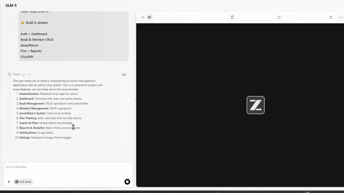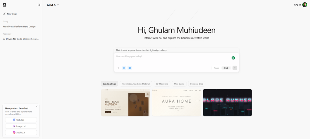 Its interface is as simple as other AI tools like ChatGPT or Claude. You just need to enter simple prompts, and your final result is ready. As soon as you give the prompt, Z.AI automatically starts working and generates your website.