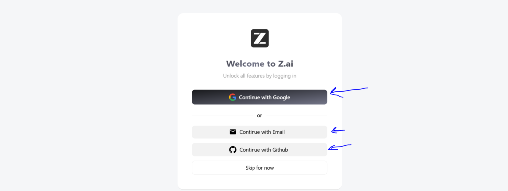 Go to the Z.AI website, create your free account, and log in with Google. This platform offers a great free plan, where you can easily experiment and design your own professional website without investing any money—absolutely free.