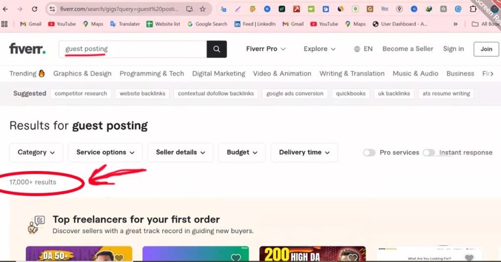 Look at the reviews on each profile – those are clients who have already done guest posting.