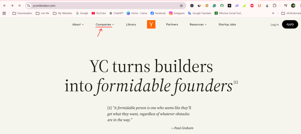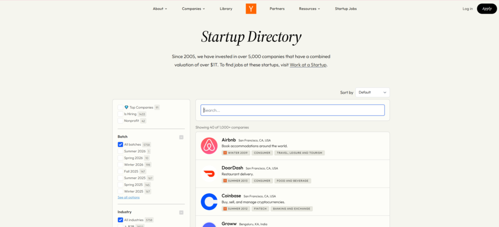 When you go to the Y Combinator website, you will see companies in categories. Go to it and you will see a very large list. Some of these companies are very large, such as Coinbase or other well-known startups.